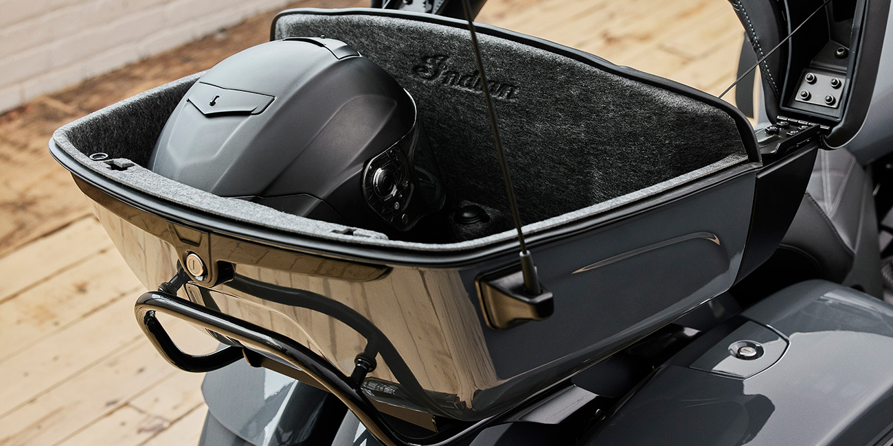More than 132 litres of weatherproof, remote-locking storage can handle all the gear you’ve got. Or take off the quick-release trunk to drop weight and give yourself a whole new profile.